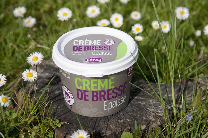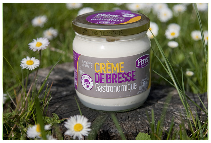 Cette crème traditionnelle est produite à partir du lait provenant des élevages répondant au cahier des charges de l’appellation d’origine Beurre et Crèmes de Bresse.